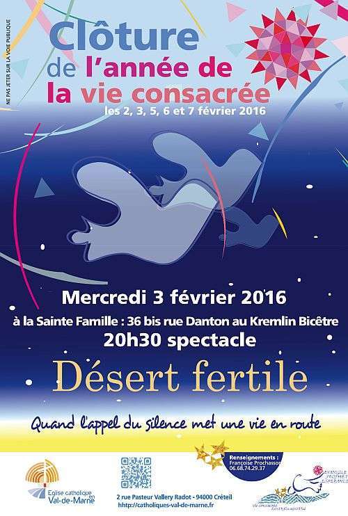 Mercredi 3 février à 20h30 : spectacle Désert Fertile. A la Paroisse de la Ste Famille au Kremlin Bicêtre.