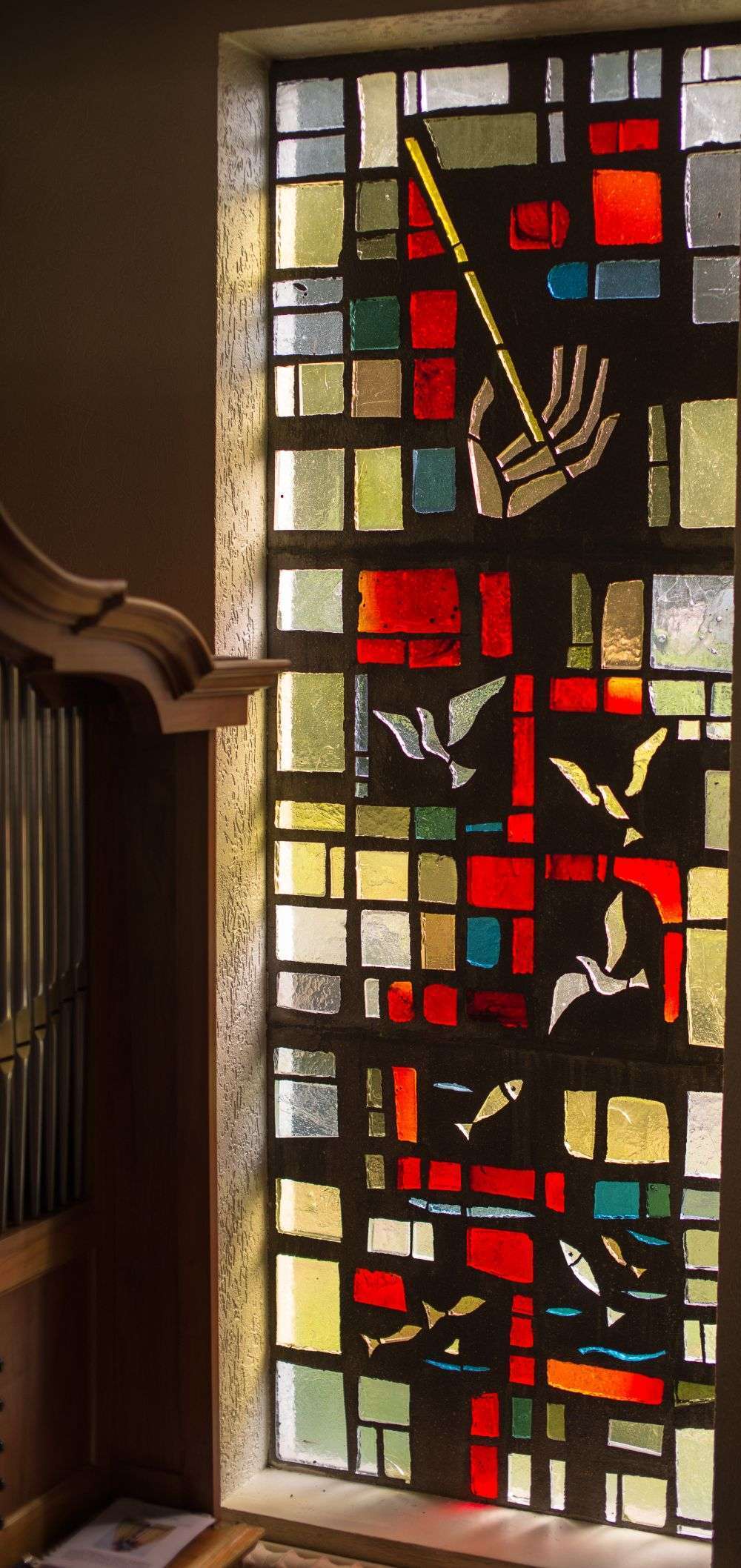 Dans notre chapelle, dans la partie des sÅ“urs, il y a un vitrail qui représente d’une manière symbolique saint François : une main que transperce une flèche rappelle les stigmates, en dessous des oiseaux en vol et des poissons, qui semblent voler comme les oiseaux, suggèrent le chant de la création, le tout entouré d’une couleur dominante : le rouge, couleur de l’amour. Je pense que ce vitrail est bien une illustration de cette joie d’être dont frère Sébastien nous a parlé d’une manière unique, tellement unique qu’il nous l’a fait désirer et la désirant nous en avons pressenti, et peut être apprécié – qui sait ? – la saveur.