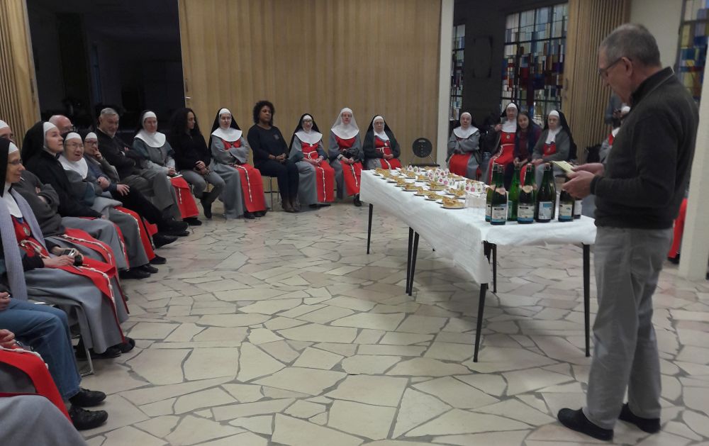 Un immense merci à vous pour votre présence. Compte tenu du contexte, chaque début d’année, nous mesurons le cadeau que vous nous faites en venant partager ce petit moment avec nous autour d’une galette, sans oublier les journées d’amitié, moment privilégié pour nous, en temps de partage. Toute la fraternité Annonciade Chemin de Paix (présente et absente) se joint à moi pour vous redire notre amitié. À vous chères SÅ“urs qui nous accueillez si souvent, qui priez pour nous et qui avez bien voulu nous confier à SÅ“ur Marie-Emmanuel et au Père Serge, pour grandir dans la foi par Marie. À vous, SÅ“ur Marie-Emmanuel et Père Serge, pour votre présence auprès de nous, pour vos enseignements et vos petits mots à chacun et vos comptes rendus. Un immense merci ! En 2018 nous avons accueilli Irène, Hela et Marie-Odile. Yolande, Colette, Marie-Ange et Maryse, malades, sont bien désolées de ne pas être là aujourd’hui mais elles sont près de nous dans l’amitié et la prière. Une pensée également pour Josette retenue auprès de son frère et pour Hélène Schmidt. 2018 a été une année importante pour nous la fraternité laïque a mis en place des badges qui soulignent notre engagement (quelques exemplaires ont rejoint Saint-Doulchard et Lichen) pour leur plus grand bonheur. Nous avons également rédigé une charte qui rappelle en quelques pages, notre spiritualité, notre engagement et notre fonctionnement. Enfin, nous avons effectué une retraite spirituelle de quatre jours à Saint-Doulchard sur le thème des vocations dans la bible. En 2019, au-delà de nos réunions mensuelles et de notre participation aux fêtes et solennités du Monastère Annonciade nous avons prévu deux actions majeures : Un petit voyage à Lichen pour quelques-uns d’entre nous du 27 avril au 2 mai pour rencontrer nos SÅ“urs ainsi que la fraternité laïque. Une retraite spirituelle de quatre jours en juin prochain à Jouarre. Chère Mère Ancelle, chères SÅ“urs, par ces quelques lignes, nous voulons vous dire que nous sommes près de vous chaque jour dans la prière et que nous formons des vÅ“ux : pour les vocations du monastère ; pour vos projets ; pour les SÅ“urs âgées et malades. Nous avons une pensée particulière pour sÅ“ur Marie de la Paix, sans laquelle, plusieurs d’entre nous n’auraient jamais intégré la Fraternité Annonciade, Chemin de Paix. Bref…, vous pouvez compter sur nous ! »
