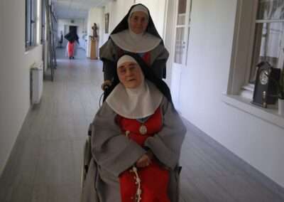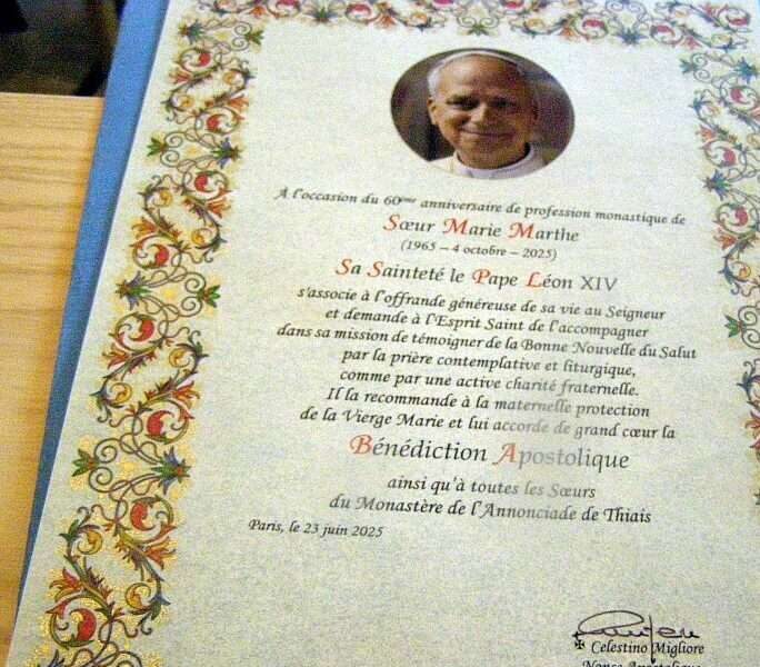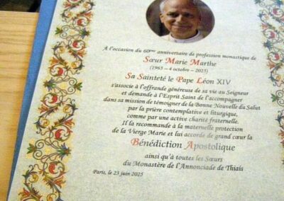 Ses sœurs lui ont réservé plusieurs récréations festives. Si la communauté est le lieu de l’obscur quotidien, de la vie donnée au jour le jour, elle est aussi le lieu de la fête ! Merci soeur Marie-Marthe !