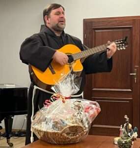 Les récréations étaient aussi animées. Le Père ayant apporté sa guitare, nous a interprété quelques chansons franciscaines de son inépuisable répertoire.