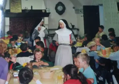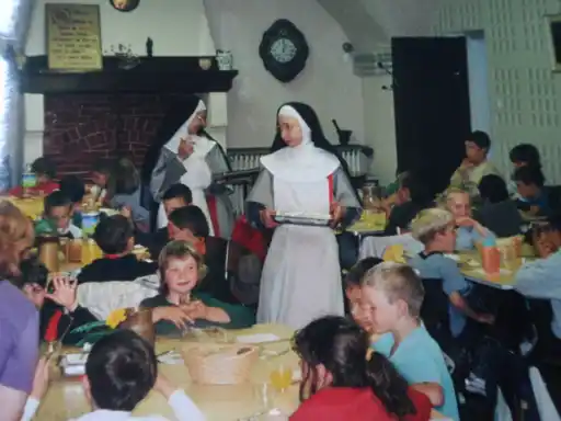 Un an avant son entrée, répondant à une annonce de journal, elle était partie travailler dans une ferme, en montagne. Elle s’occupait des vaches, fabriquait du fromage et accomplissait toutes les autres tâches des agriculteurs. Pour une Parisienne comme elle, c’était très dur. De plus, il y avait le froid et la neige. Elle n’a pu qu’y rester un mois. Mais cela a été néanmoins une expérience très formatrice. Ensuite, elle a travaillé comme surveillante dans un pensionnat de religieuses.