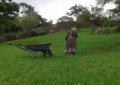Mais très vite l’épreuve traverse la fondation provençale. La responsable de la première heure tombe malade et la communauté se retrouvera sans tête pendant trois longs mois. Vont-elles rester ? Quitter la Provence ? SÅ“ur Marie-Blandine, avec ses sÅ“urs, reste forte. Quelques mois passent. En août 1981, arrive enfin une soeur responsable, sÅ“ur Marie du Rédempteur. La croix des premiers mois a laissé son empreinte : au sein de la communauté, grâce à la persévérance de chacune, une profonde unité s’est forgée. Cela leur a permis d’aller de l’avant. En 1982, une soeur doit retourner au monastère de Thiais prendre un temps de repos. Il faut la remplacer.  SÅ“ur Marie-Blandine, en plus de ses propres responsabilités, va la suppléer dans ses divers emplois, dont l’accueil des groupes d’enfants. Elle s’en acquitte admirablement. Le jardin s’embellit grâce au travail acharné, persévérant de soeur Marie-Blandine qui anime aussi les fêtes communautaires : composer une saynète, un chant, ou aider les autres à terminer les leurs, pour la fête de la Vierge Marie ou une autre occasion. Apporter la paix dans les moments difficiles. Donner un coup de main pour les corvées en cas d’urgence. Décorer le réfectoire aux jours de fêtes. Les célébrations communautaires, préparées avec grand soin, sont des moments de lumière, de joie et d’unité fraternelle, si chers à sainte Jeanne.